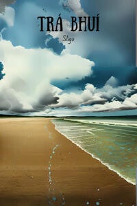 Transport yourself to the tranquil shores of Ireland with this captivating beach scene art print. The image masterfully captures the ethereal beauty of a sandy coastline under dramatic skies, where rolling clouds create a moody atmosphere above the gentle waves. The contrast between the golden sand and the deep turquoise waters creates a striking visual impact, while footprints trailing along the beach add a touch of human connection to this peaceful landscape. The title 'Trá Bhuí', meaning 'Yellow Beach' in Irish, perfectly encapsulates the warm, sandy tones that ground this coastal composition. Perfect for bringing a sense of serenity and natural wonder to any room, this art piece serves as a window to Ireland's stunning shoreline, inviting viewers to lose themselves in its contemplative atmosphere